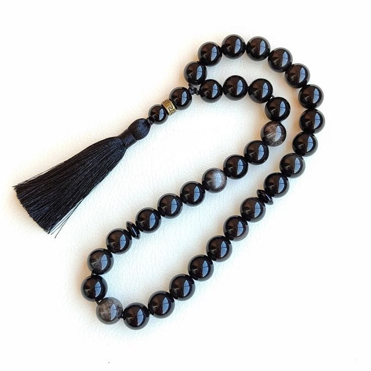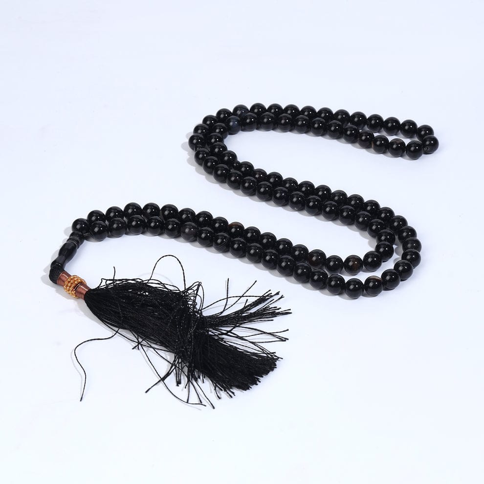 Black Aqeeq Stone Tasbeeh asli Natural Black Agate (Aqeeq) se handmade tayyar ki gayi hoti hai. Iske deep black polished beads elegance, power aur spiritual strength ka perfect combination detey hain. Smooth finishing aur durable thread is tasbeeh ko rozana ibadat ke liye ideal banata hai.